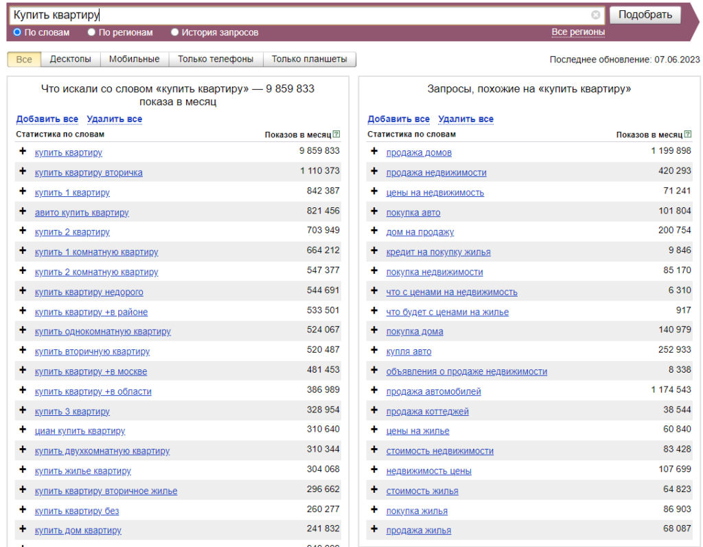 Вордстат хорошо подходит для подбора базовой семантики. Но углубляться лучше с помощью других источников: