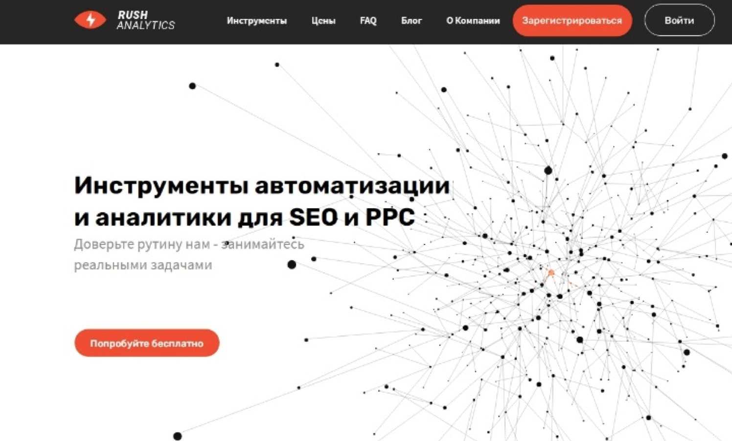 Rush Analytics. Данная платформа так же оснащена важнейшими инструментами для проведения полного анализа сайта и кластеризации семантического ядра. Процесс анализа платформы заключается в следующем — искусственный интеллект находит в сети интернет схожие страницы, которые зачастую являются сайтами конкурентов. После этого тщательно анализируется ТОП-выдачи и распределяются ключи по странице ресурса.