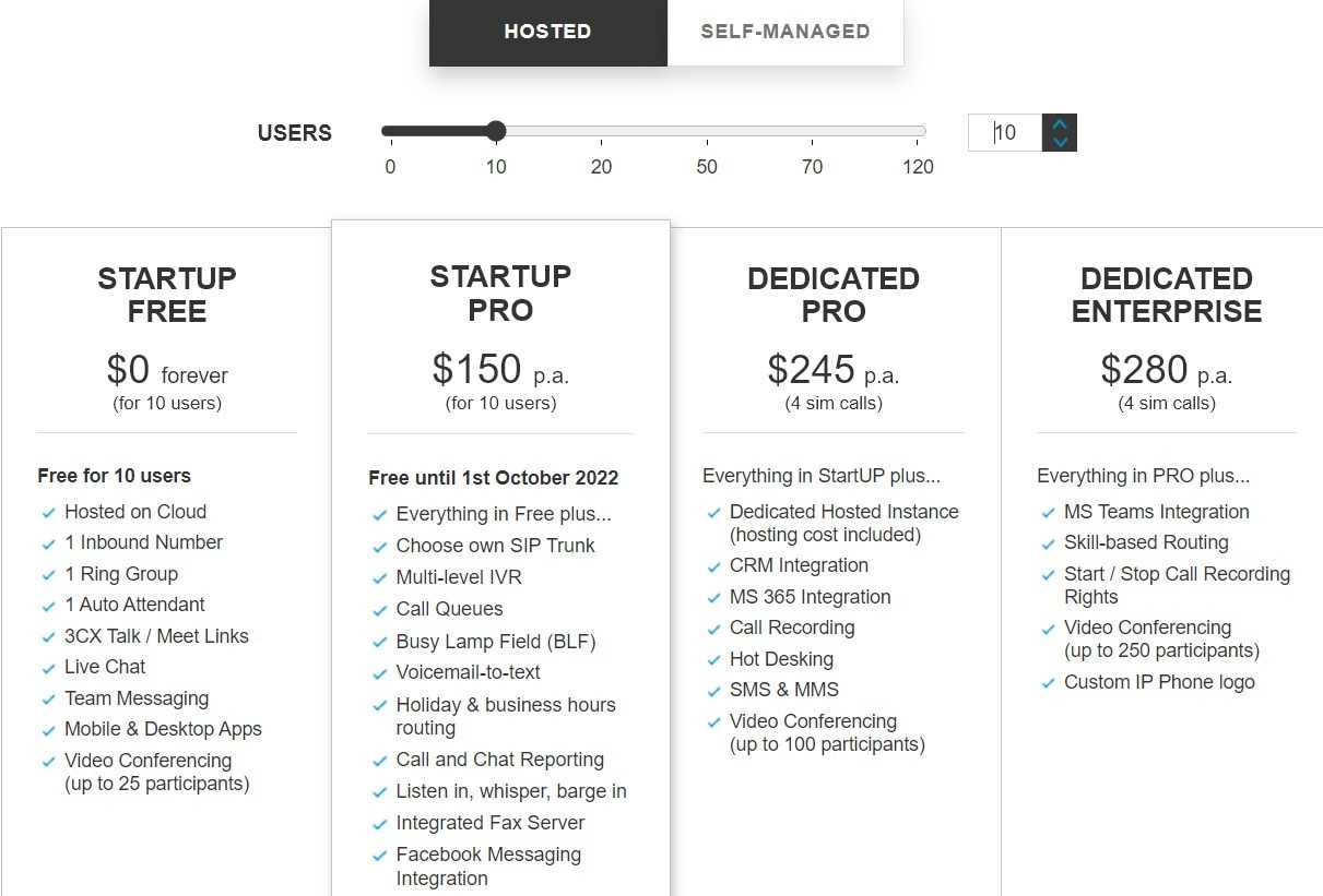 3CX StartUP бесплатен, и повышение уровня вызовов также бесплатно. Всегда есть бесплатная версия 3CX доступны бесплатно, и на данный момент они переходят с бесплатного Standard 4SC на другое предложение под названием 3CX СВОБОДНО.