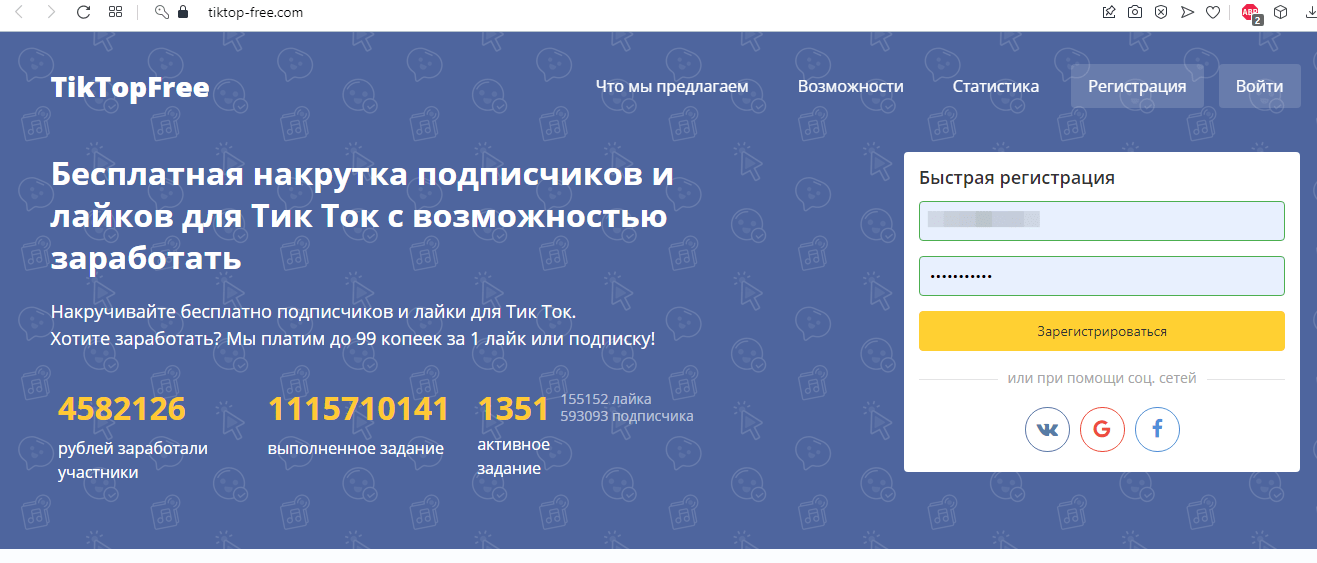 Первый и основной инструмент, который предлагает сервис – это накрутка Tik Top Free. Через площадку можно получить лайки или новых фолловеров для своего аккаунта. Для этого необходимо создать соответствующее задание, после чего другие пользователи начнут его выполнять, оценивая указанное видео сердечками или подписываясь на блогера.