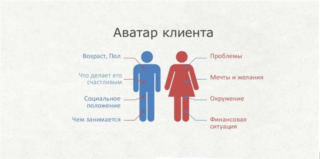 Портрет (или аватар) клиента — это детальное описание потенциального покупателя, практически «модель» живого человека. Например, «Николай, 30 лет. Работает маркетологом в небольшой компании, ищет, чем заменить заблокированные соцсети, чтобы привлечь новых клиентов. Бюджет ограничен, поэтому компания не может позволить себе пиарщика. Не задумывался о продвижении в СМИ, поскольку читает его дорогим занятием».