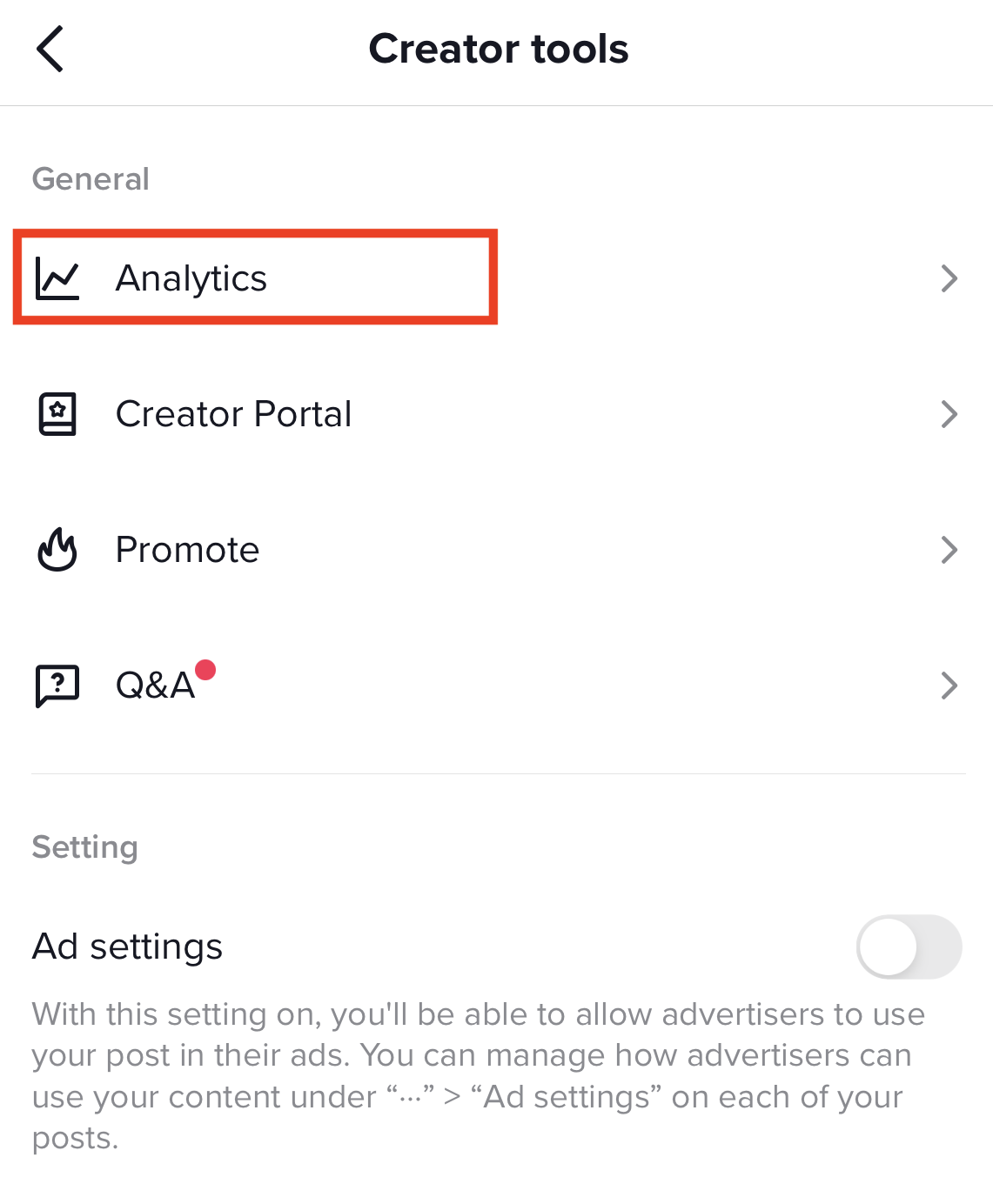 - You’ll see the Analytics section. Tap to gain access to your analytics and stats.