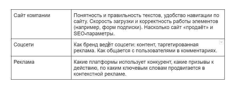 Структура конкурентного анализа