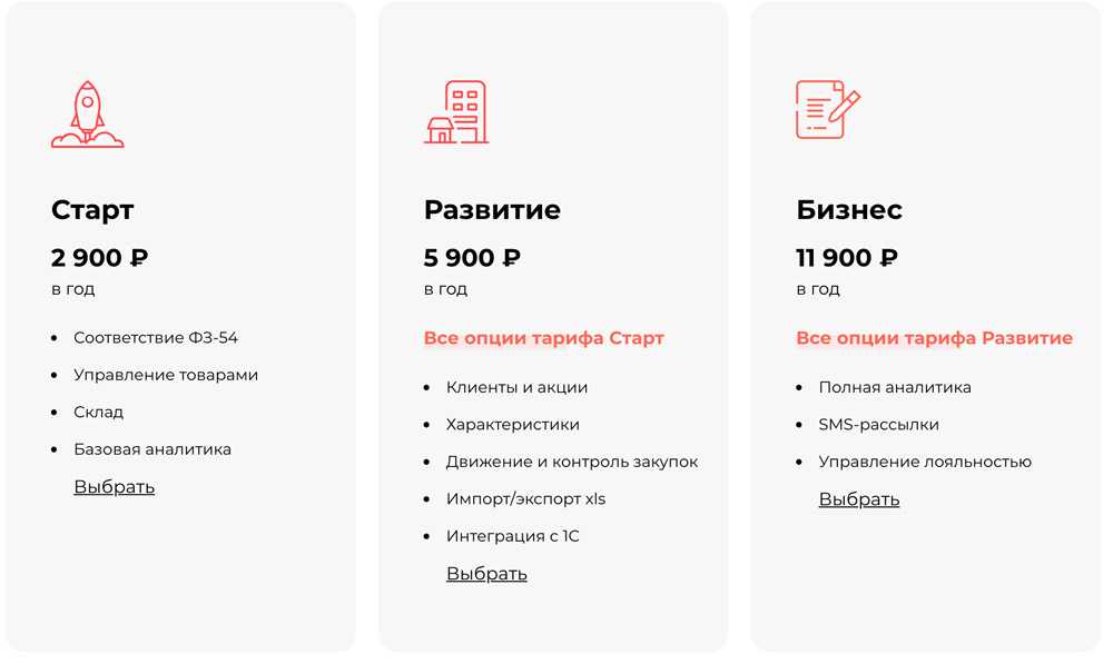 Первый — бесплатный, здесь нем есть только касса. Остальные стоят 250, 600 и 720 рублей в месяц соответственно.