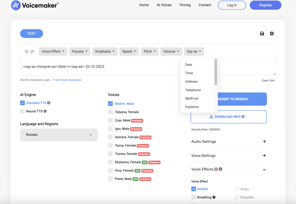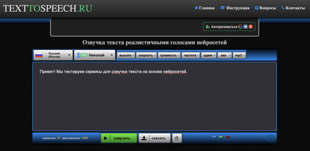 Преобразование текста в аудио онлайн бесплатно мужским голосом