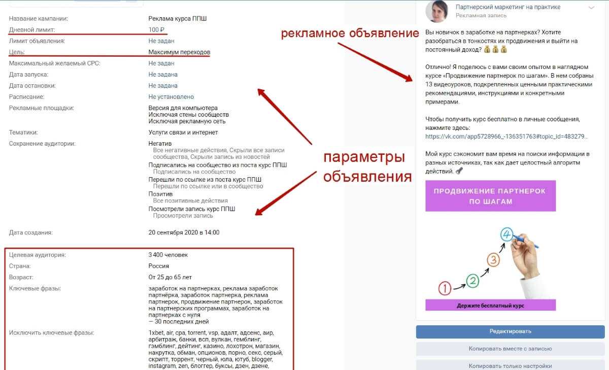 Настройка таргетированной рекламы ВКонтакте