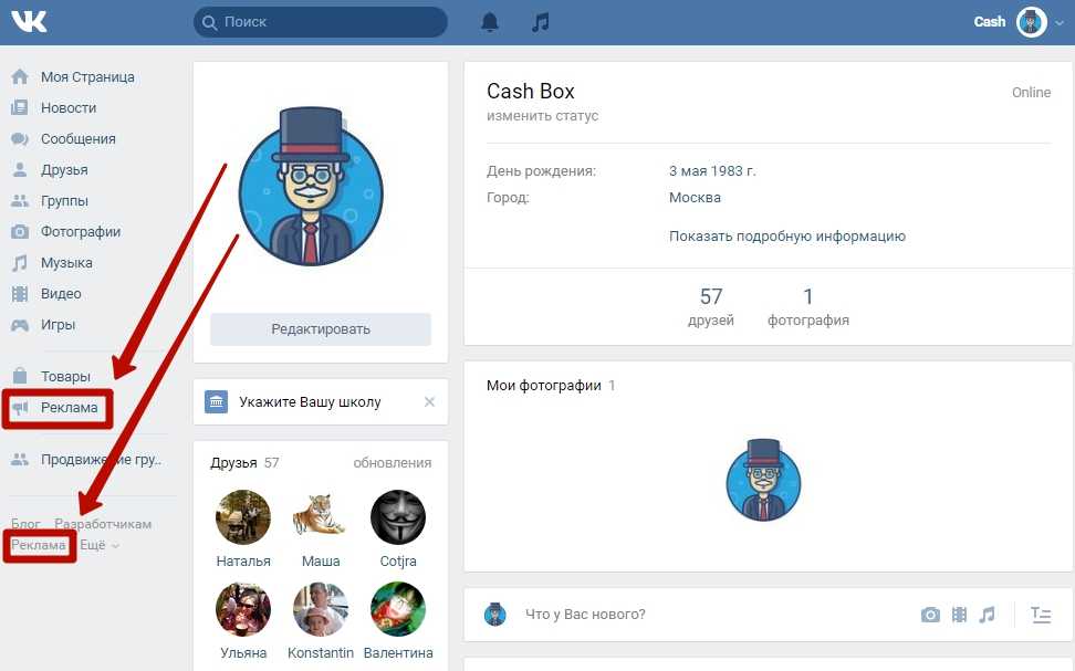 Как перейти в сервис «VK Реклама» из личного профиля
