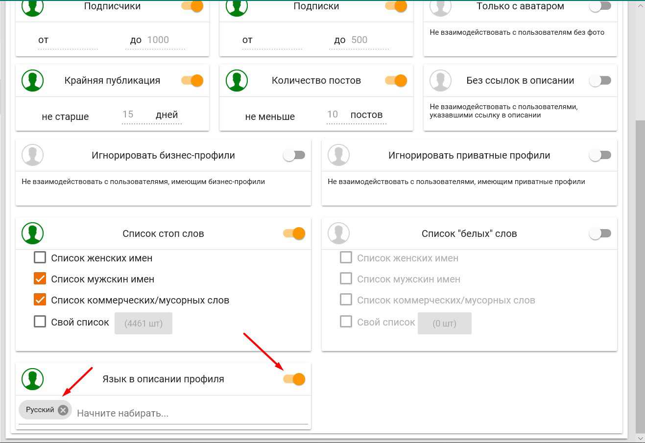 Как было упомянуто выше, есть два способа работы с помощью массфоловинга – ручной и автоматический. В первом, Вы сами подписываетесь на аккаунт и ждёте обратную подписку. Во втором, Вы прорабатываете стратегию продвижению в специальном софте, например, ZEUS. Там, кстати, можно выбрать язык в описании профиля, что поможет накрутить русских подписчиков: