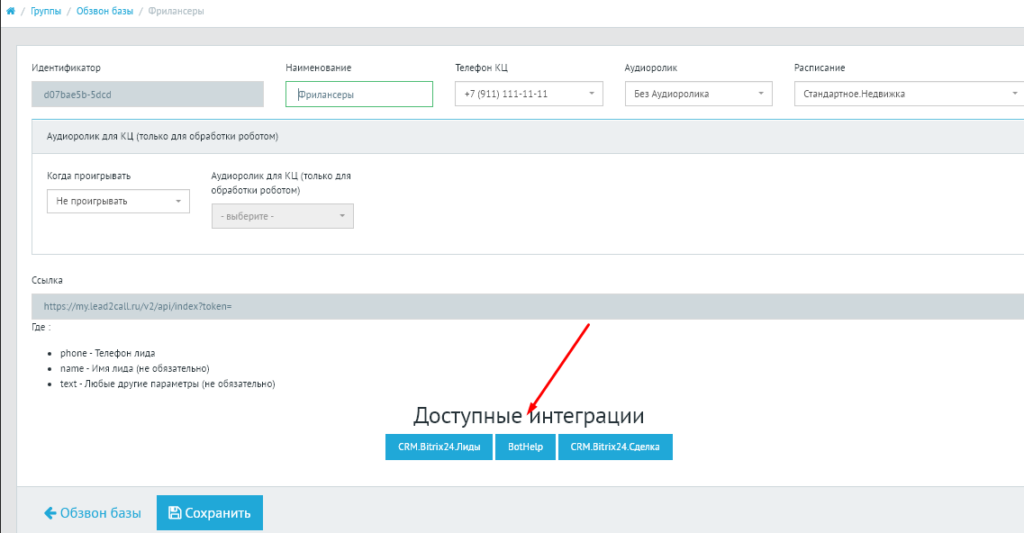 - Аудио-ролик, если нужно настроить автодозвон, который будет проговариваться, когда дозвонимся до потенциального клиента;