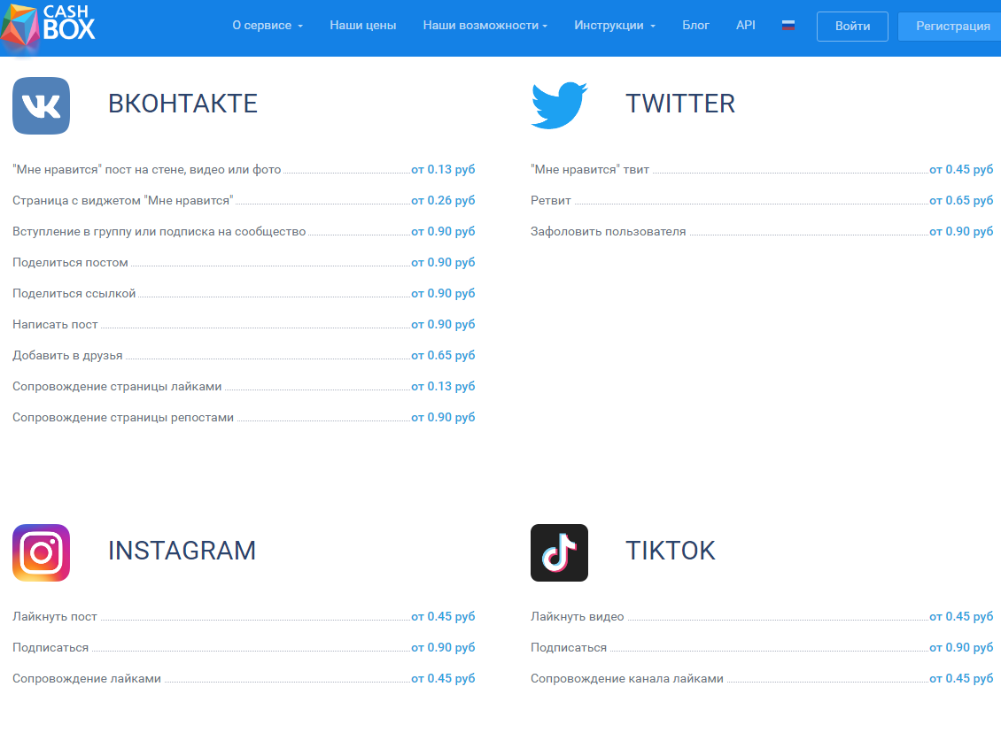 КэшБокс — один из немногих сервисов накрутки Вконтакте и других соц. сетях, который не только помогает продвигать свой бизнес, но и подработать обычным пользователям.
