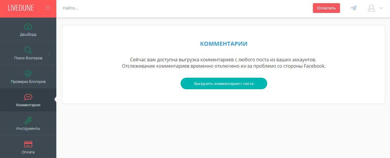 Сервис умеет собирать комментарии и отправлять их для просмотра и ответов в удобный мессенджер, а еще он приспособлен для анализа блогеров и выбора лучшего для заказа у него рекламы. К сожалению, уже довольно долгое время сервис не дает загрузить аккаунт и отследить комментарии, но, возможно, его починят.