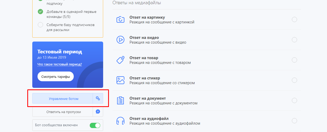 Сервис отправит сообщение с инструкциями по настройке. Проверьте это и начните настройку чат-бота.