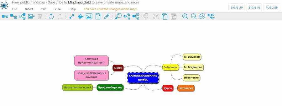 Хотела показать на примере карты для дошкольников. Но для маленьких детей лучше делать визуальные схемы с картинками. А их добавлять можно только по платной подписке.