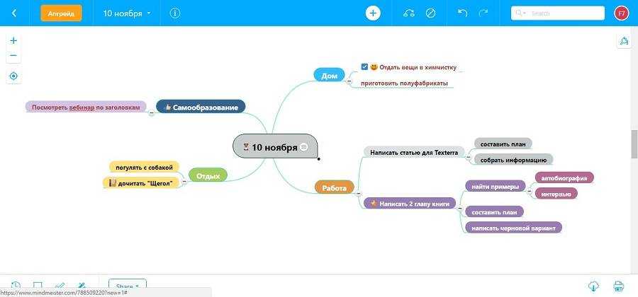 Бесплатный онлайн-сервис. Он позволяет создавать списки, планировать события. Создаваемые вами диаграммы не являются общими, и при необходимости ими можно поделиться. В онлайн-сервисе можно обмениваться идеями.