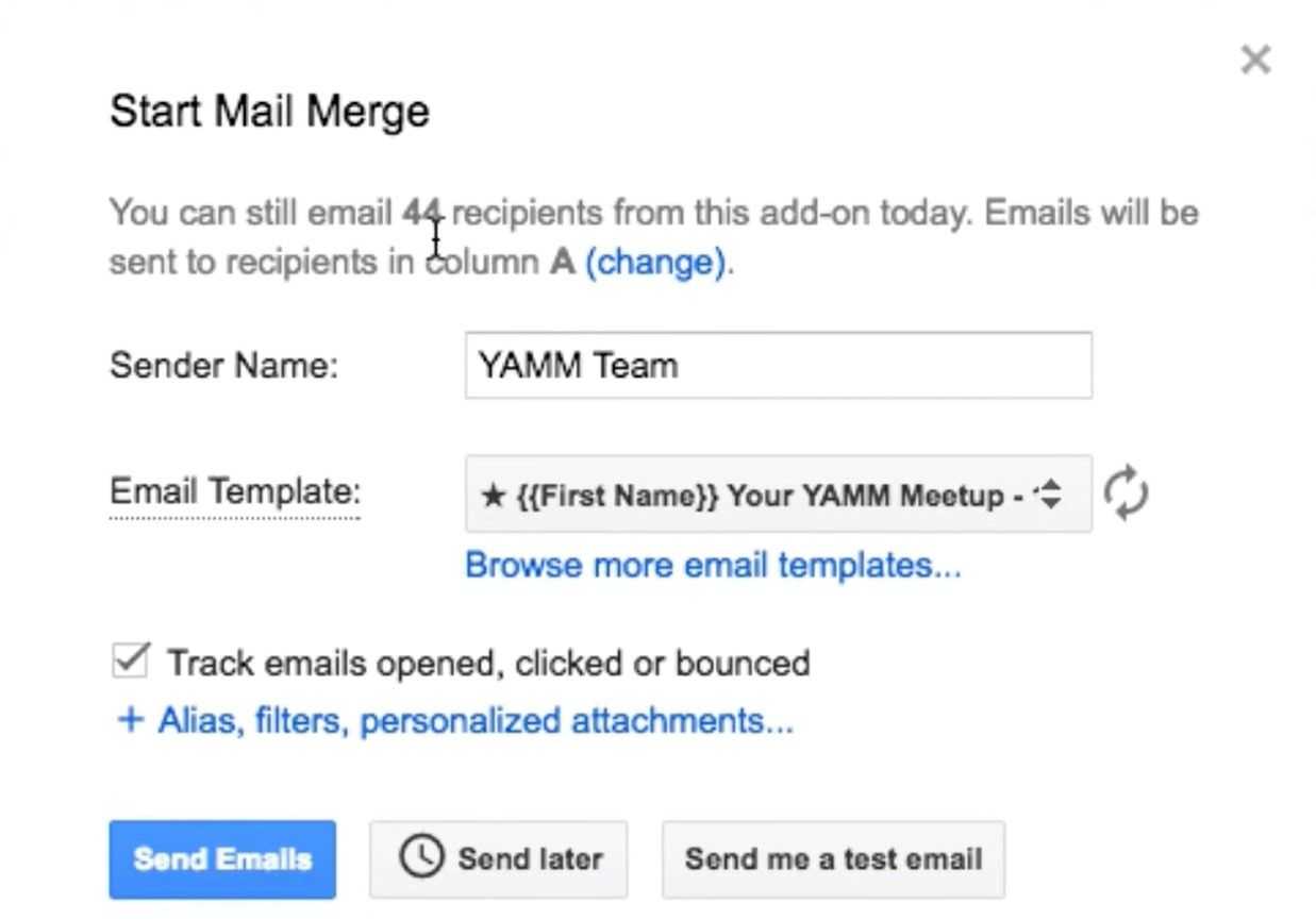 Как и Hunter, это еще один мощный инструмент для работы с электронной почтой, который может повысить рейтинг кликов в ваших электронных письмах за счет их автоматической персонализации. Когда вы создаете таблицу Google со своими контактами, еще одно слияние заполняет шаблон электронного письма с информацией и начинает отправлять электронные письма.
