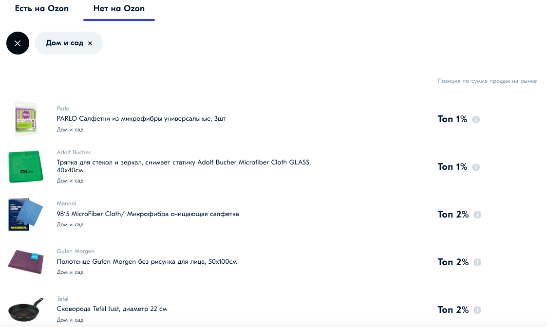 Смотрите, самое простое, что мы можем сделать — это пойти напрямую на Ozon и последовательно, категория за категорией, анализировать объем товара и объем конкуренции внутри каждого из направлений.