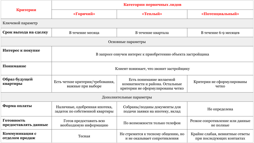 Чтобы избежать конфликтов и полноценно выполнять план продаж, договоритесь и примите критерии и категории первичных лидов.