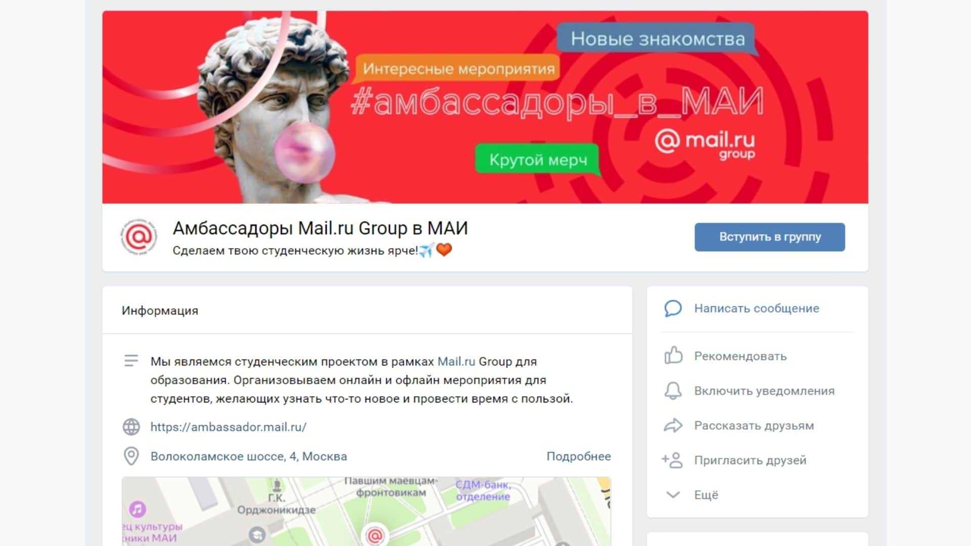 Студенческая группа амбассадоров Мэйл.ру во ВКонтакте