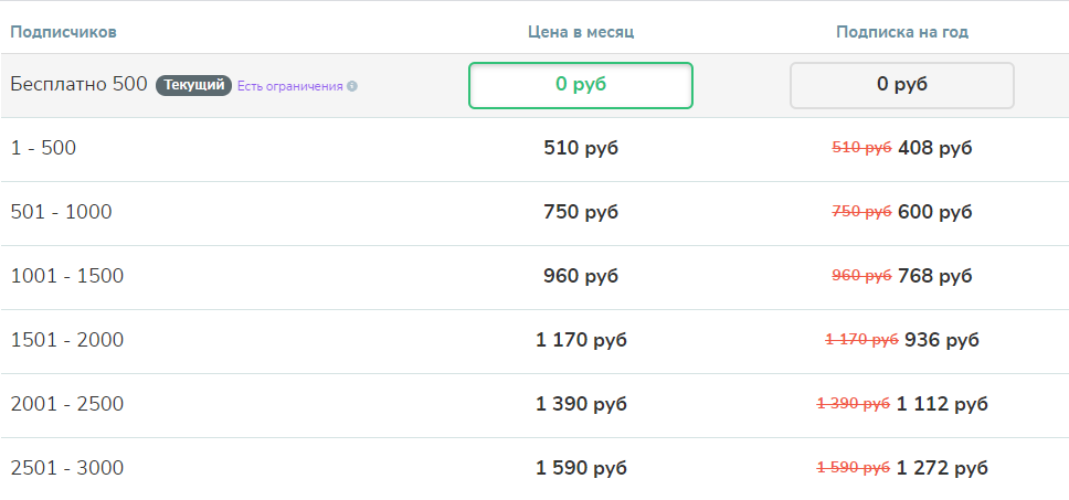 Мало писем на бесплатном тарифе. При регистрации вам дадут отправить 1500 писем базе из 100 контактов. На месяц этого хватит только чтобы протестировать возможности сервиса, доставляемость писем и реакцию подписчиков. Для сравнения: на бесплатном тарифе Mailchimp можно ежемесячно отправлять 10 000 писем базе из 2 000 контактов. Но возможности бесплатного тарифа в Mailchimp ограничены.