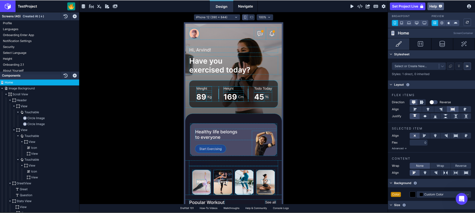 Одна из приятных фишек Draftbit — возможность выгрузить код готового приложения для ручного редактирования. Можно быстро собрать рабочий прототип приложения в конструкторе, а потом вручную доработать его в среде разработки. Получается максимально индивидуальное приложение при небольших затратах времени.