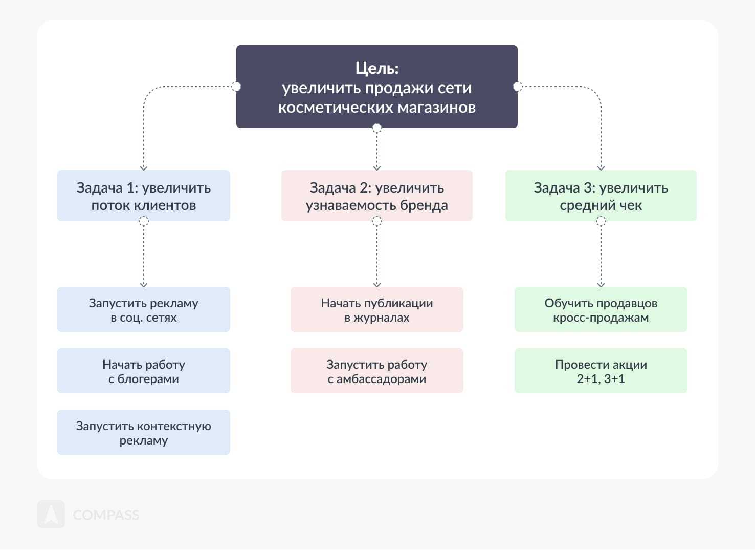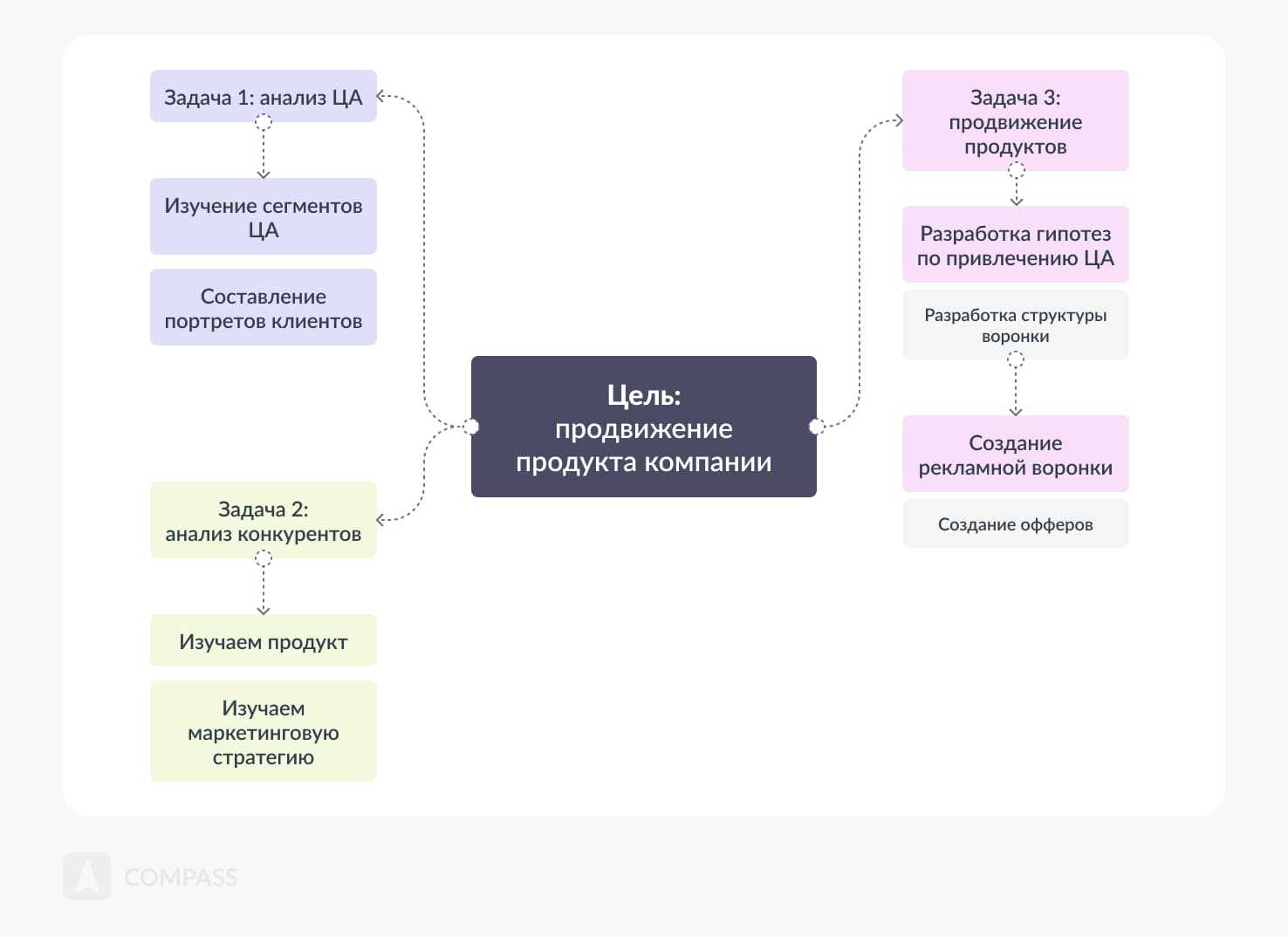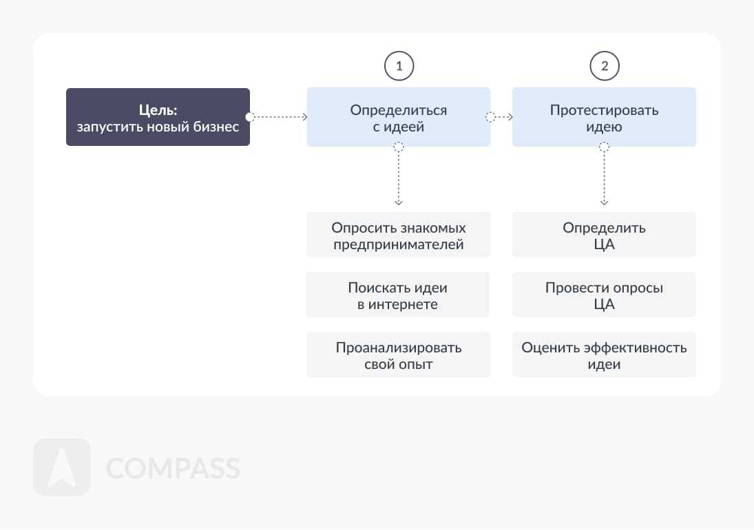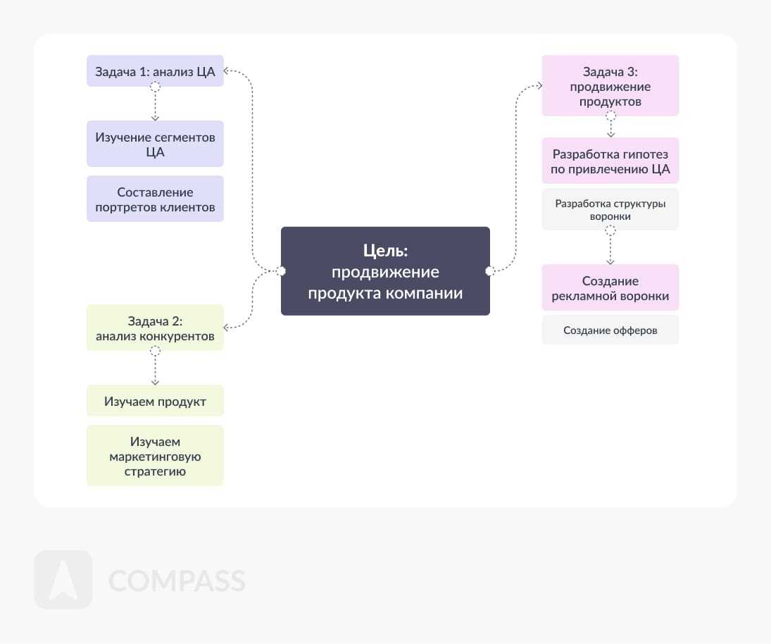 - Далее основную цель необходимо разбить на несколько задач. Причем они не должны логически пересекаться друг с другом.