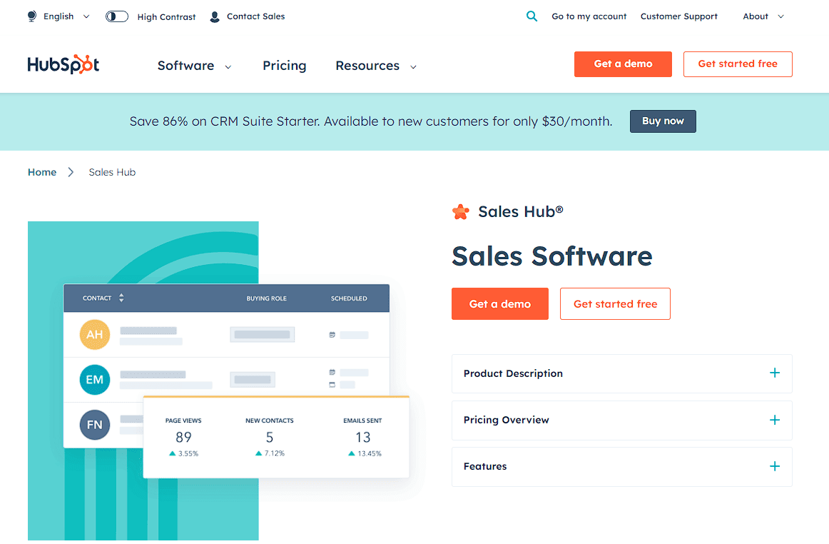 - Легко интегрируется с CRM Hubspot.