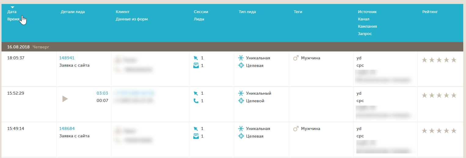 Вы можете вывести также все звонки, либо лиды — уникальные звонки + уникальные заявки.