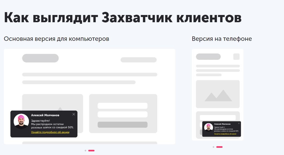 Помимо обратного звонка, эффективно работает захватчик клиентов.