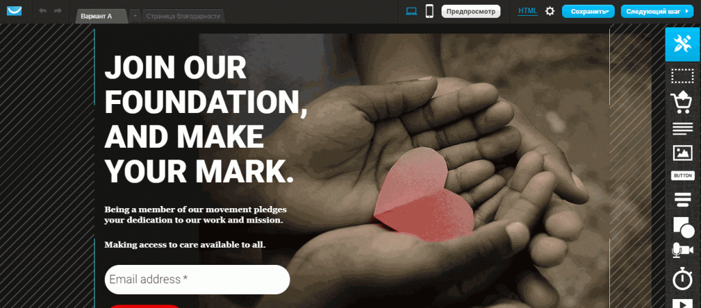 Месяц после регистрации бесплатно доступны все возможности сервиса. А это и публикация лендингов, и запуск вебинаров, и A/B-тестирование, и push-уведомления на мобильных.