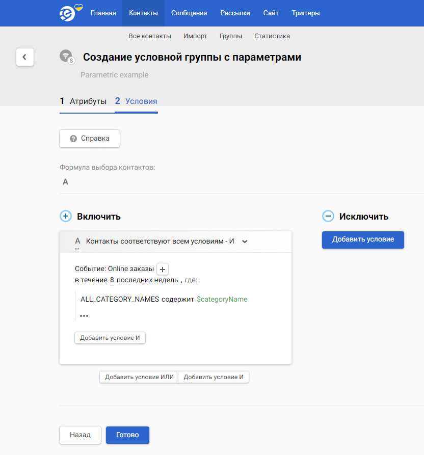 Инструмент сократит время на подготовку рассылок для однотипных групп, которые отличаются значением параметра, по которому строится сегмент. К примеру, чтобы анонсировать акции в разных категориях, теперь не нужны отдельные сегменты и сценарии под каждую из них – только один. Вместо конкретного значения (раздела товаров) в условиях запуска будет переменная, и как только поступит событие с акцией – система автоматически подберет контакты и запустит кампанию.