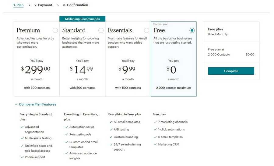 Кроме платных тарифов MailChimp содержит и бесплатный тариф с основными базовыми функциями и рассылкой на 2 тыс. адресов. Мы выбрали Premium на 20 тыс. контактов за $399. По стоимости нас полностью устраивает.