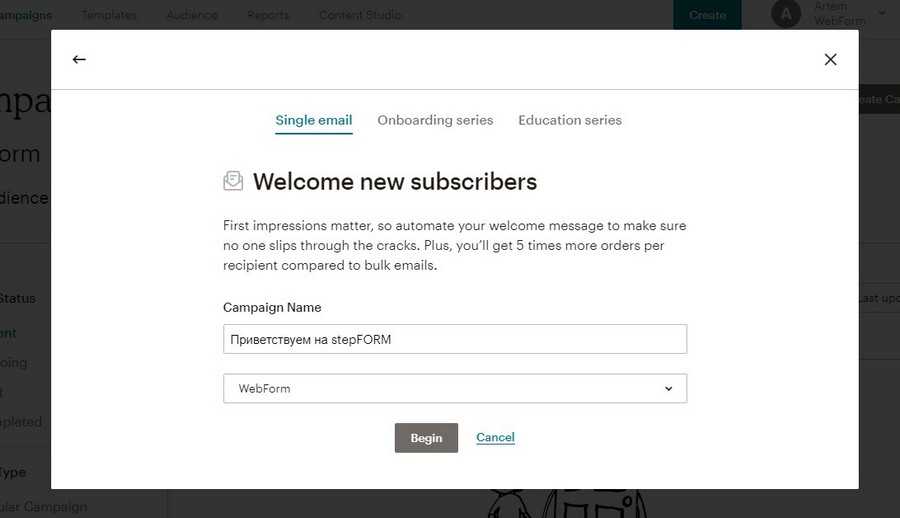 Допустим, можно задать приветственное письмо, которое будет отправляться каждому новому подписчику.