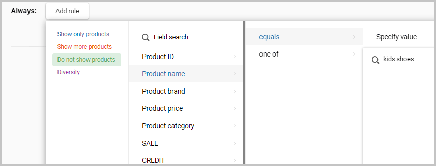 You can choose to only recommend products from a certain brand, certain categories, based on price etc.