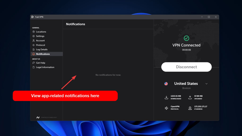 Notifications: To ensure that you can easily address any issues that require attention, the app has a Notifications section where all app-related messages are shown. However, we haven’t seen a single notification in this section. On the brighter side, the VPN conveniently notifies you every time the VPN connects or disconnects.