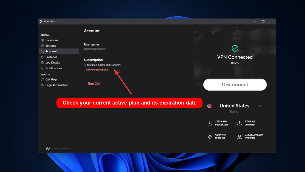 Account: The Account section displays your username and subscription details, including the plan and its expiration date. You can also enable auto-renewal of their subscription with the ‘Renew Subscription’ button. Additionally, a sign-out option is also available here.