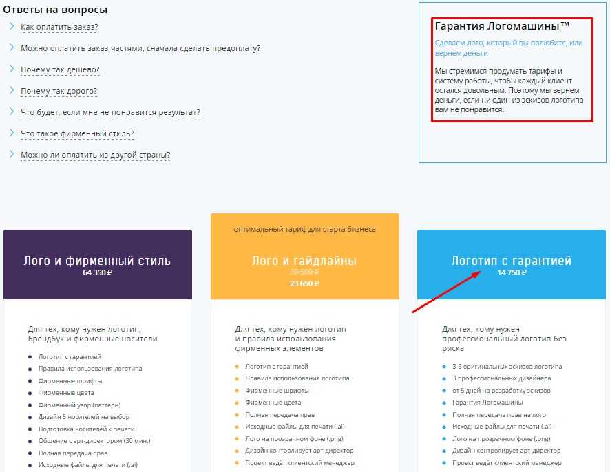 Для бизнеса, связанного с творчеством и креативом, гарантия хорошего результата — это подтверждение того, что клиент заплатит только за то, что ему понравится. Например, «Логомашина» предлагает услугу «»: