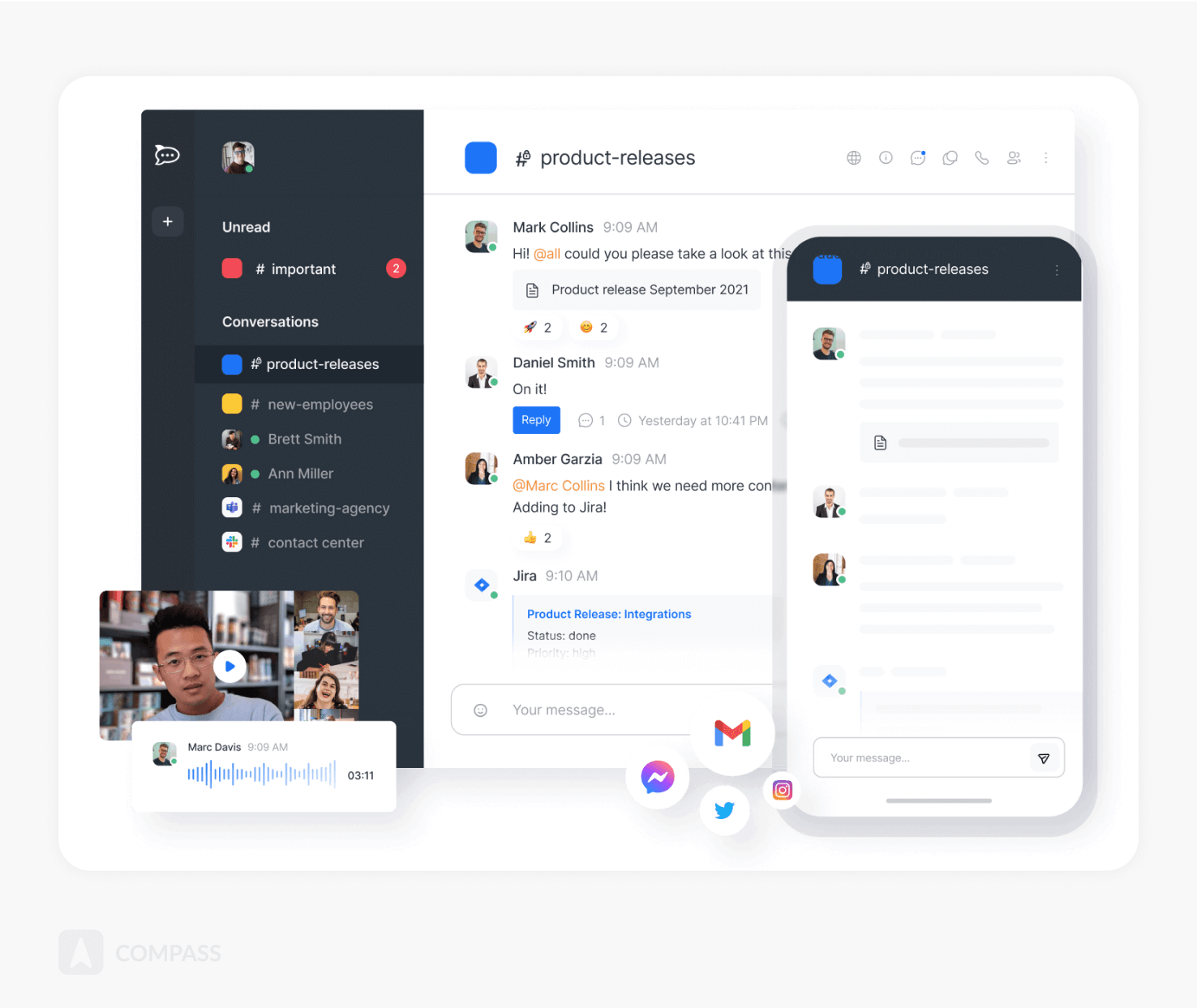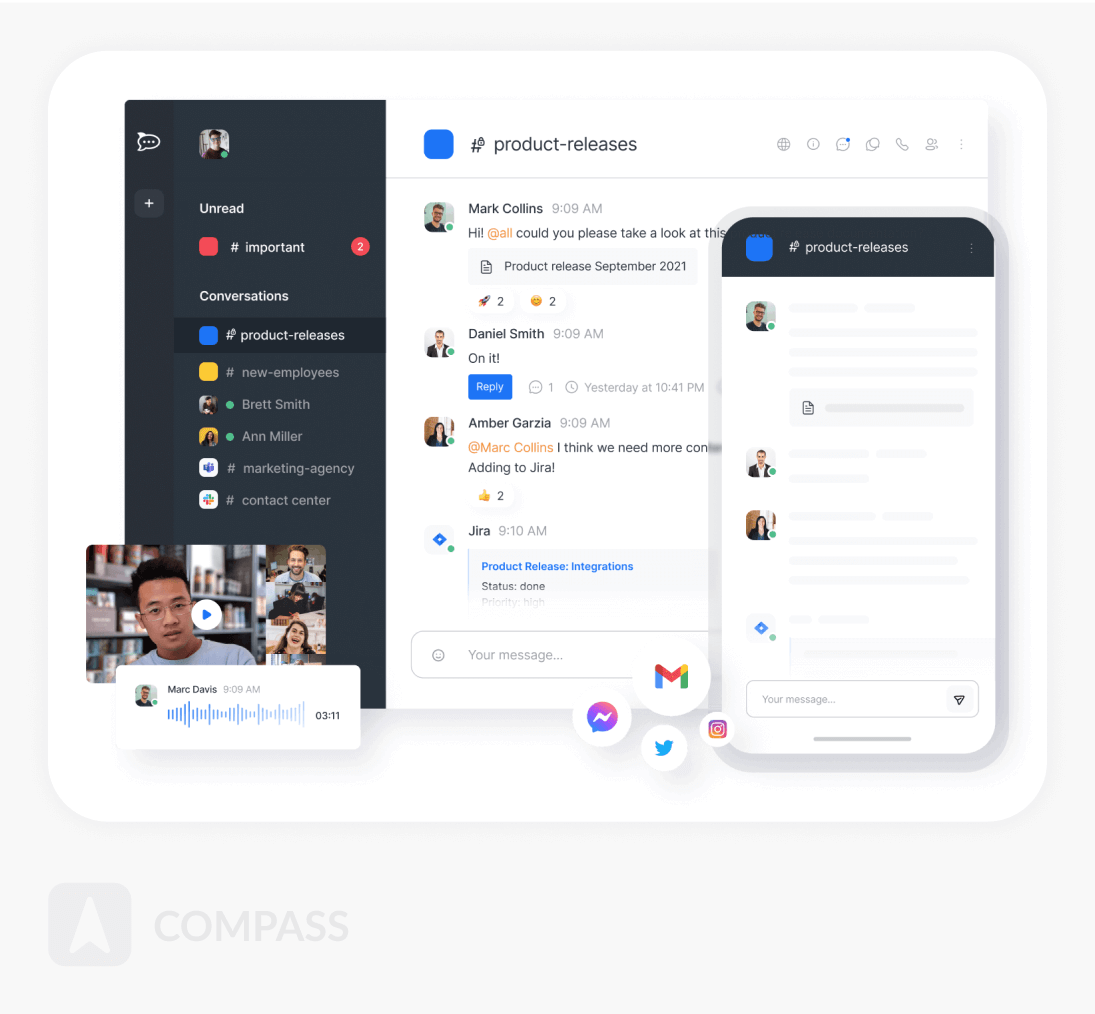 Compass – удобный корпоративный мессенджер, который помогает перенести рабочее общение в отдельное пространство