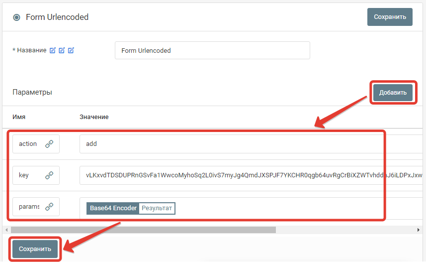 GetCourse требует, чтобы к нему все данные приходили закодированные с помощью Base64 Encoder. Сделайте отдельное действие для этого «Преобразования» — «Base64 Encoder» и нажмите кнопку «Сохранить».