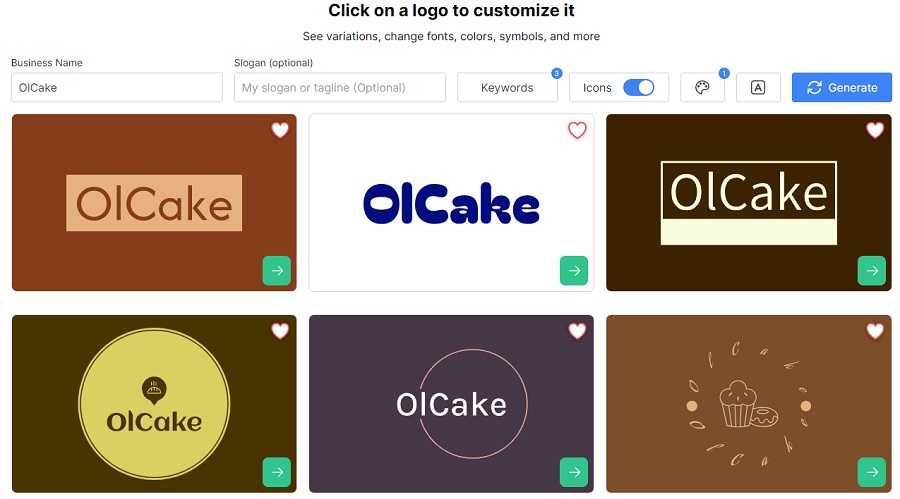 Каждый из сгенерированных лого можно в последствии доработать, добавив слоган, поменяв иконку или изменив цветовую гамму.