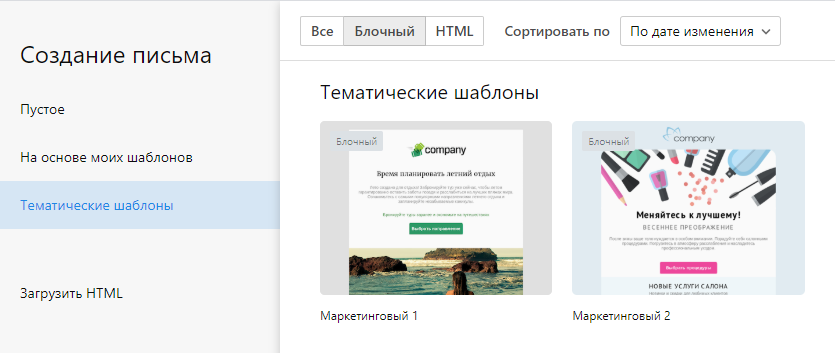 Всего лишь 8 шаблонов писем: шесть базовых и два тематических.