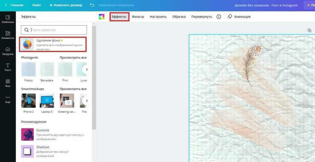 А чтобы убрать фон, в том же меню выберите «Удаление фона». Это премиум-функция, доступная для подписчиков Canva Pro.
