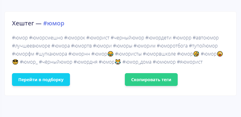 Уже через секунду сервис выдаст результат – в виде своеобразного «облачка» с ключевыми словами, начинающимися с символа «решетка».Последний шаг – нажать на кнопку «Скопировать теги» и перенести найденное в TikTok.