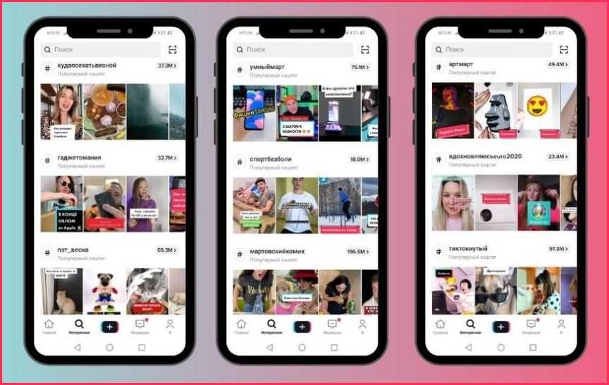 Один из самых простых способов поиска популярных хештегов – это вкладка TikTok Discover. Кроме тегов, на странице собраны трендовые звуки, видео, аккаунты пользователей, которые набирают наибольшее количество просмотров. Списки распределены по тематическим категориям, чтобы люди могли просматривать контент, который будет интересовать именно их.