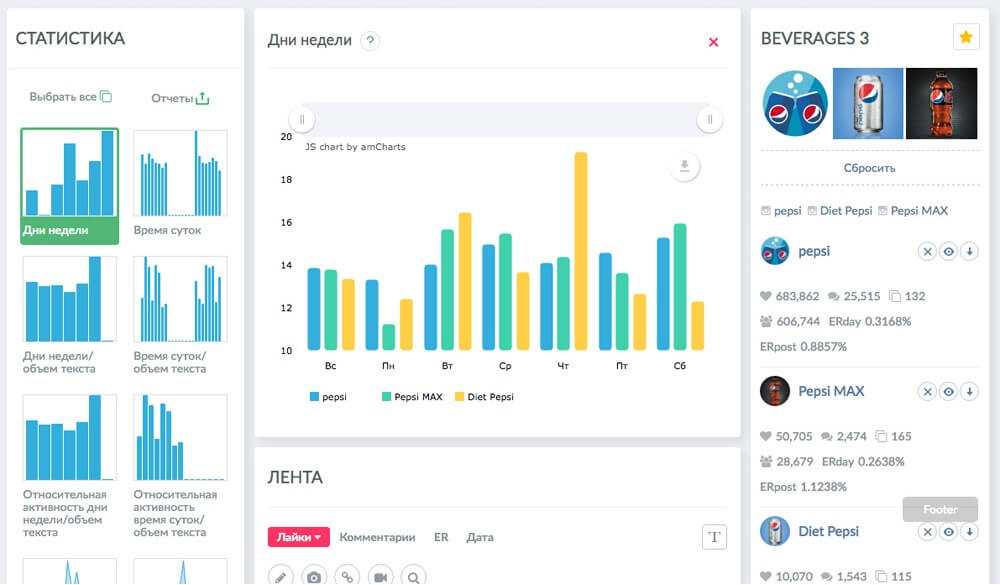 Этот онлайн-сервис для анализа контента и интересов аудитории в Инстаграме и других соцсетях. Инструмент позволяет анализировать данные, как по собственным страницам и страницам конкурентов. Находить, наиболее выгодное время для публикаций. Оценивать популярность разных постов: какие записи больше или меньше набирают лайков и комментариев, какой охват получают.