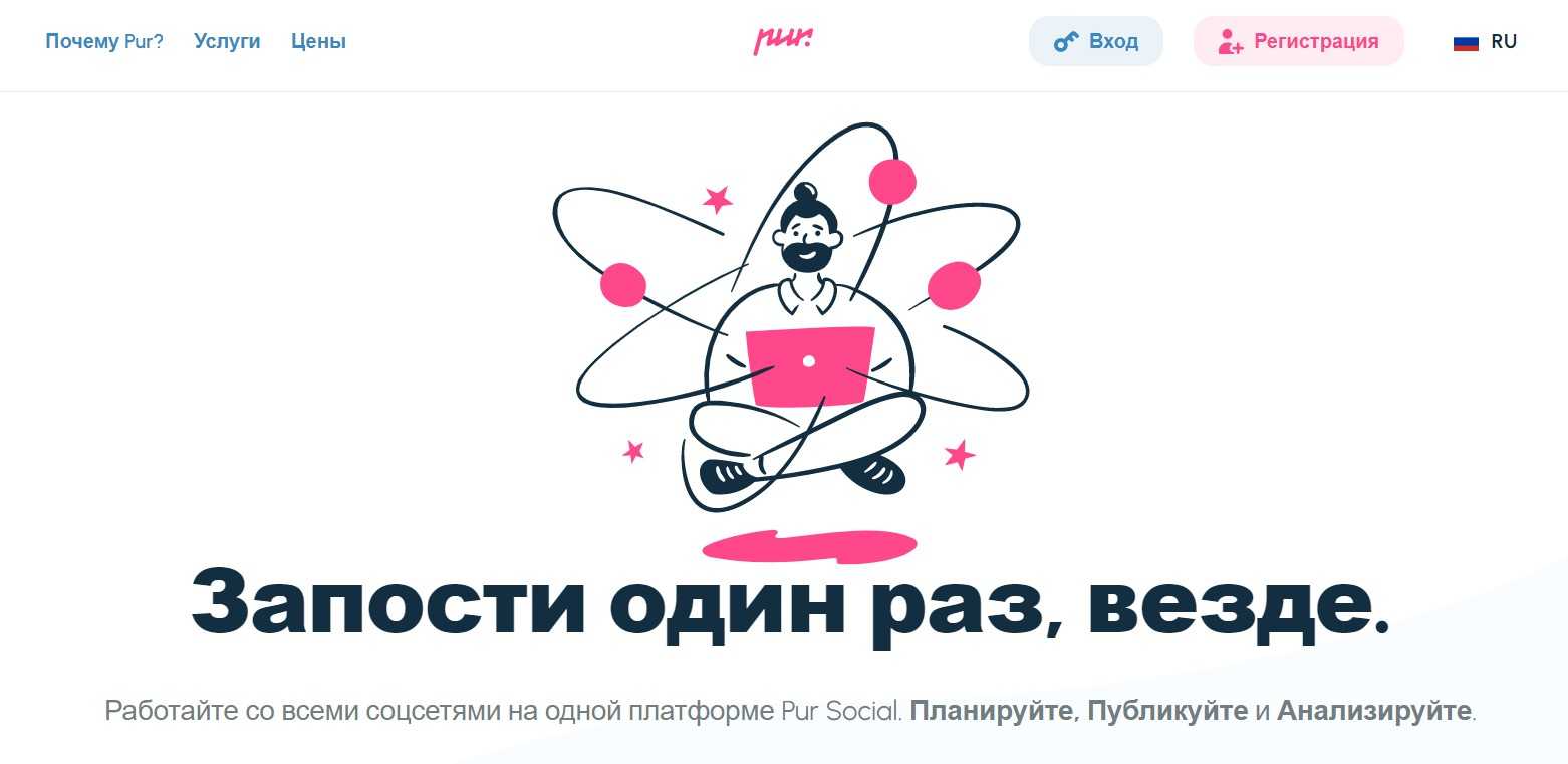 Единая платформа для работы с социальными сетями. Позволяет планировать публикации и постить их в несколько социальных сетей (Instagram, Facebook, Telegram, Linkedin, Twitter, Одноклассники, ВКонтакте), а также отслеживать аналитику: вовлечённость, прирост подписчиков, показатели сторис. Однако посмотреть данные по конкурентам здесь не получится.