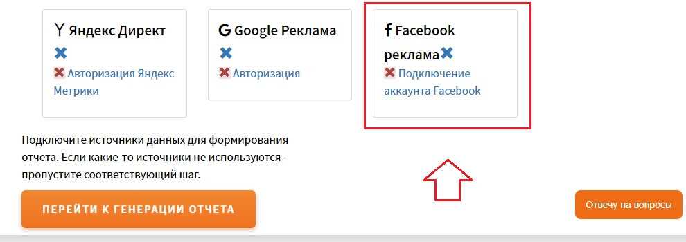 Этот сервис для создания отчётов на основе данных систем веб-аналитики. В нём также есть возможность выгрузить данные из рекламного кабинете в Facebook.