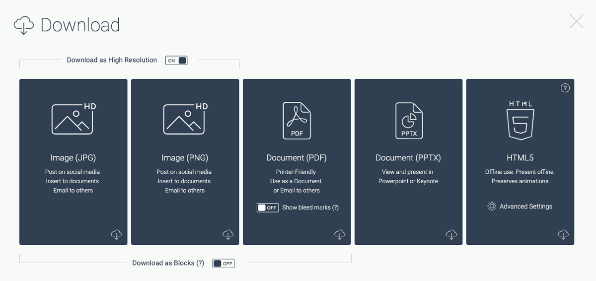 Вы можете скачать ее для использования офлайн в форматах изображений, PDF или HTML5. Или создайте ссылку, чтобы поделиться ею с конкретными людьми.