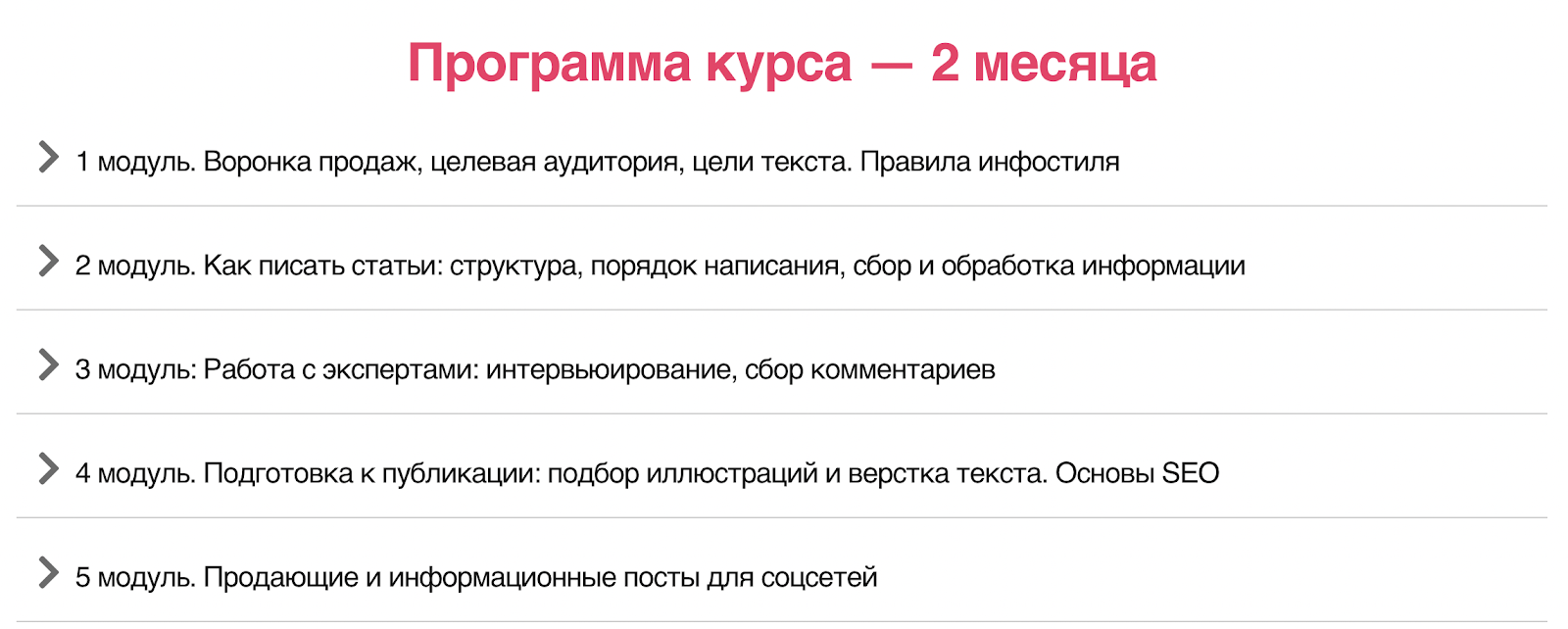 Это был успешный запуск, который продолжается до сих пор. Сейчас я обучаю уже 12 поток копирайтеров. Я собрала всю информацию, которой владела на тот момент, весь свой опыт, и оформила в структурированный курс. В нем я рассказываю, чем отличается низкобюджетный копирайтинг от высокобюджетного, как к этому прийти, что нужно освоить, даю информацию про инфостиль, структуру статей, рассказываю, как писать посты, лендинги и рассылки. В нем много практики: после курса студент пополняет портфолио сразу шестью текстами, которые не стыдно показать заказчикам.