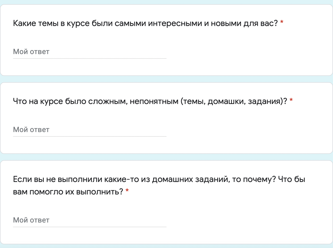 Первый поток шел две или три недели, все было очень плотно, люди не успевали сдавать домашки. Я поняла, что курс нужно подрастянуть, и сейчас он идет два месяца. К следующему потоку я собрала обратную связь, выяснила, что в программе не хватает некоторой базовой информации. Здесь сыграло роль «проклятье знания»: с высоты опыта кажется, что то, что знаешь ты, знают и все остальные. В процессе приходилось это преодолевать, и обратная связь от учеников мне очень помогала