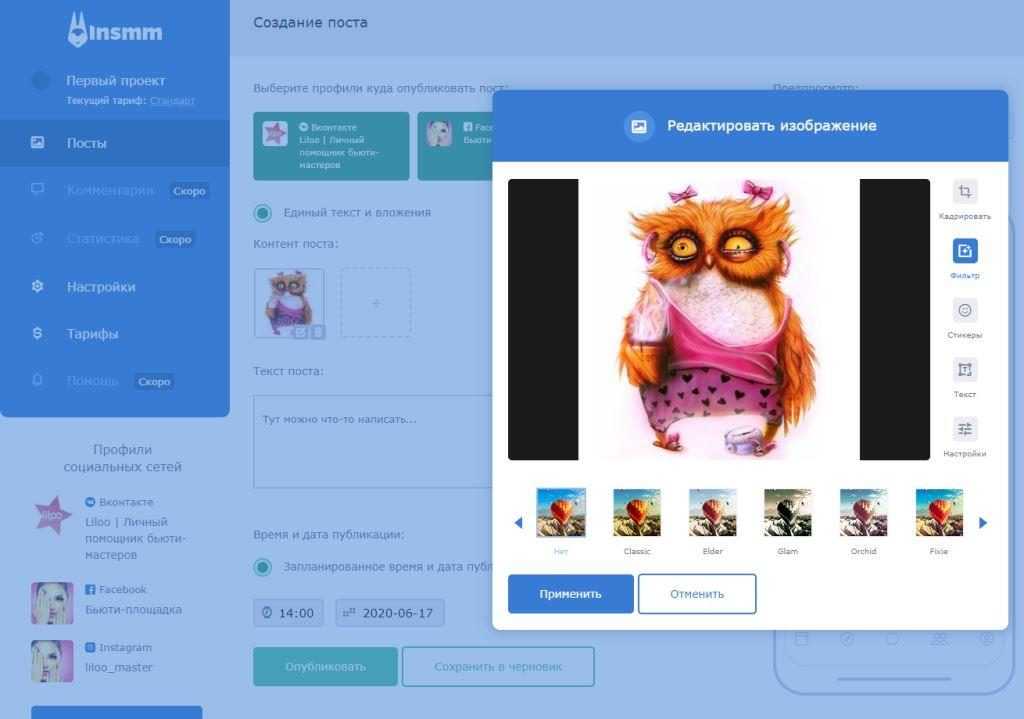 Качественный сервис автопостинга, который дает просто море возможностей SMM-щику.
